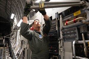 U.S. Air Force Senior Airman Jahi Flowers, 15th Operations Support Squadron aircrew flight equipment technician, performs a routine 120-day helmet inspection at Joint Base Pearl Harbor-Hickam, Hawaii, July 23, 2025. The inspection involves an internal and external look at the helmet to ensure there