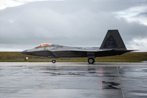 Seven U.S. Air Force F-22 Raptors from the 94th Fighter Squadron, 1st Fighter Wing, Joint Base Langley-Eustis, Virginia deployed to Andersen Air Force Base, Guam, to conduct operations in the western Pacific—the first of its kind since the days of Theater Security Packages—Nov. 6.