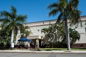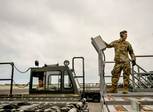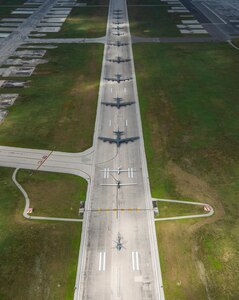 A U.S. Navy MH-60S Knighthawk, U.S. Air Force RQ-4 Global Hawk, Navy MQ-4C Triton, Air Force B-52 Stratofortress’, and KC-135 Stratotankers stationed at Andersen Air Force Base, Guam, perform an "Elephant Walk" April 13, 2020. The Elephant Walk showcases the 36th Wing's readiness and ability to