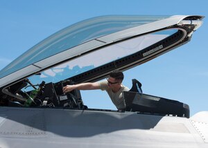 As the morning sun rises over the base, the pilot walks to his aircraft. Both man and machine will work as one unit in the sky today. The pilot looks at the crew chief, who is waiting at the aircraft, and gives a thumbs up. As the pilot buckles into the cockpit and the canopy closes, the crew chief