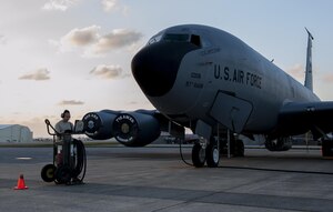 U.S. Air Force Staff Sgt. Chirstopher Anderson, 909th Aircraft Maintenance Unit crew chief, reviews his technical orders during a routine ground refueling Dec. 7, 2015, on Kadena Air Base, Japan. Techincal orders are guides for repairing, maintaining and performing daily duties for maintainers to