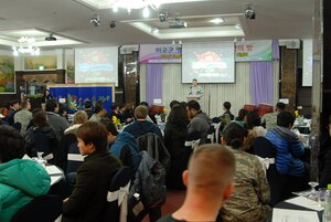 Wolf Pack leadership greets the Acting Secretary of the Air Force Eric K. Fanning, upon his arrival, Nov. 26, 2013. The secretary visited the Wolf Pack to get a better look at Kunsan's mission of defending the base, accepting follow on forces and taking the fight North.