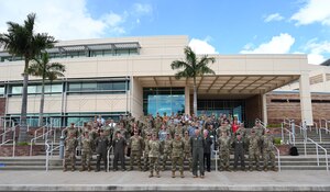 U.S. Air Force Chief Master Sgt. David Wolfe, Pacific Air Forces command chief, speaks with the 18th Logistics Readiness Squadron vehicle management flight at Kadena Air Base, Japan, June 9, 2023. During his visit, Wolfe toured different facilities, recognized Airmen for excellent performance and
