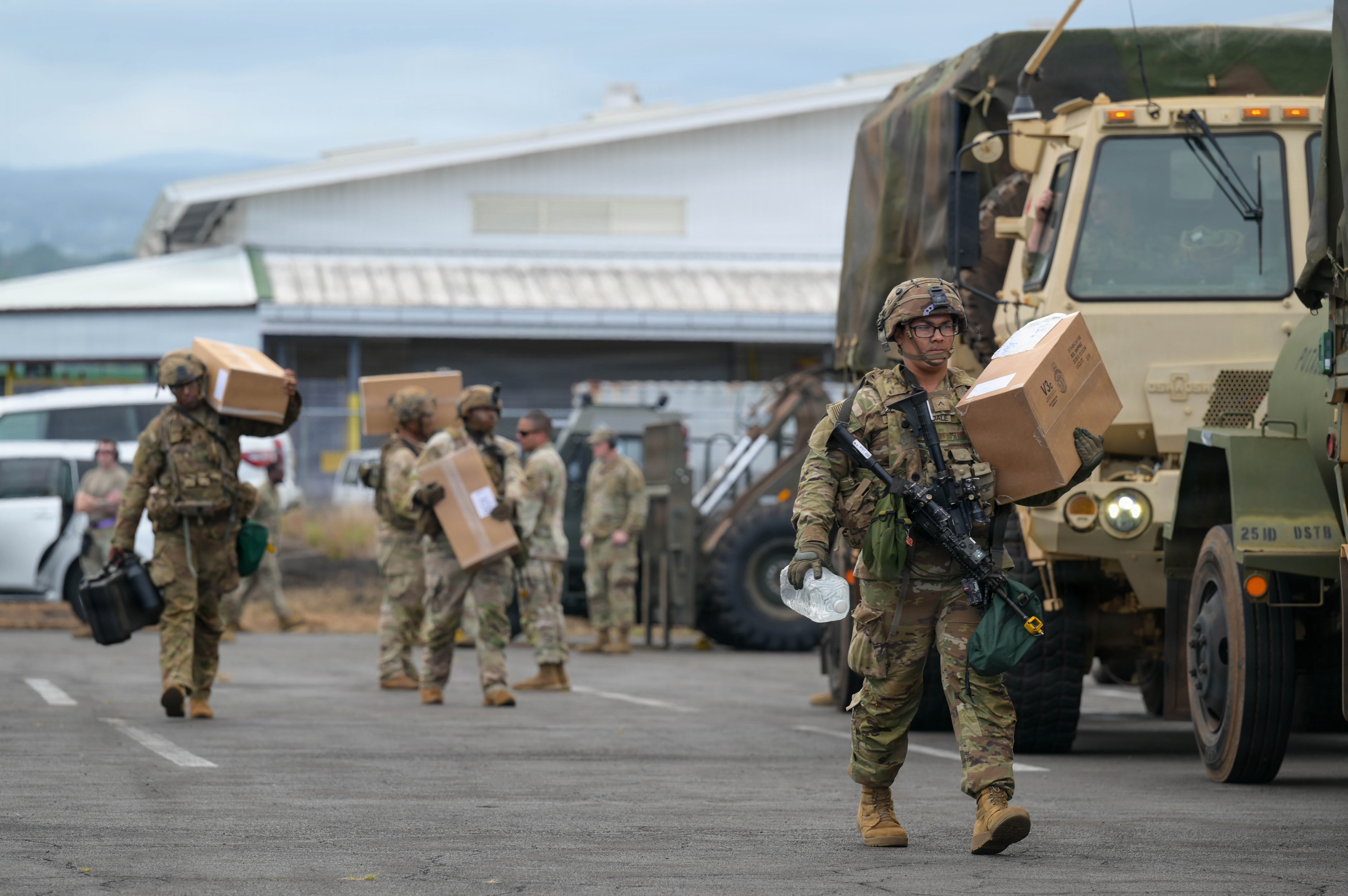 U.S. Air Force Senior Airman Anthony Jimenez, 721st Contingency Response Squadron crew chief, marshals a C-17 Globmaster III during Joint Pacific Multinational Readiness Center (JPMRC) 25-01 at Hilo International Airport, Hilo, Hawaii, Nov. 8, 2025. Exercise JPMRC 26-01 is a large-scale joint and multinational exercise designed to train units and leaders in the region’s complex and austere jungle, arctic, and archipelago environments, replicating real-world conditions. JPMRC is a key way the Army contributes to Integrated Deterrence and regional security in the Indo-Pacific, training thousands of combat credible forces in the region. (U.S. Air Force photo by Staff Sgt. Alan Ricker)
