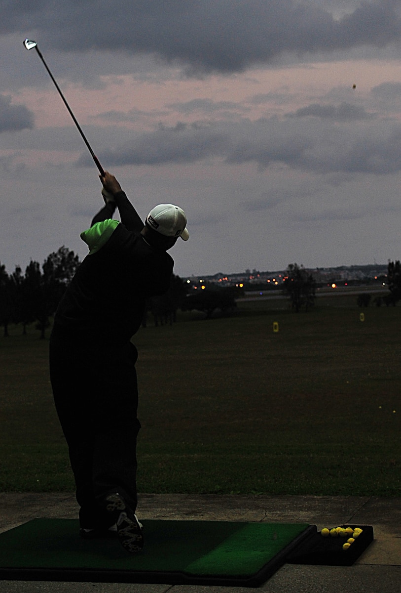 An Airman participating in Kadena Air Base's Combined Federal Campaign golf tournament tees off at the Banyan Tree Golf Course, Dec. 3. Golfers playing in the tournament made contributions to the CFC. Through fundraisers and individual contributions, Kadena AB has raised $383,093 for CFC so far this year. (U.S. Air Force photo/Staff Sgt. Alesia Goosic)