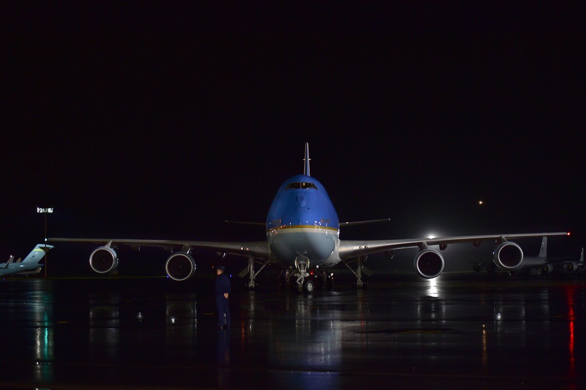 Staff Sgt. Joseph Stamps, from 15th Maintenance Squadron, awaits the arrival of Air Force One as the ceremonial chocker on Joint Base Pearl Harbor-Hickam, Hawaii, Dec. 18 2015. The First Family passed through JBPHH as they begin their annual holiday vacation. Airmen from the 15th Wing assisted with planning and preparation of the First Family’s arrival. (U.S. Air Force photo by Tech. Sgt. Aaron Oelrich/Released)