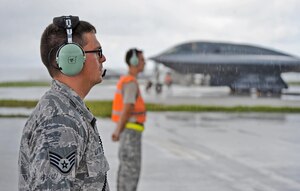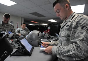 U.S. Air Force Aircrew Flight Equipment technicians assigned to the 509th Operation Support Squadron from Whiteman Air Force Base, Mo., conduct pre-checks on flight equipment at Andersen Air Force Base, Guam, Aug. 9, 2016. The work of the AFE shop ensures the safety of the B-2 pilots and allows the