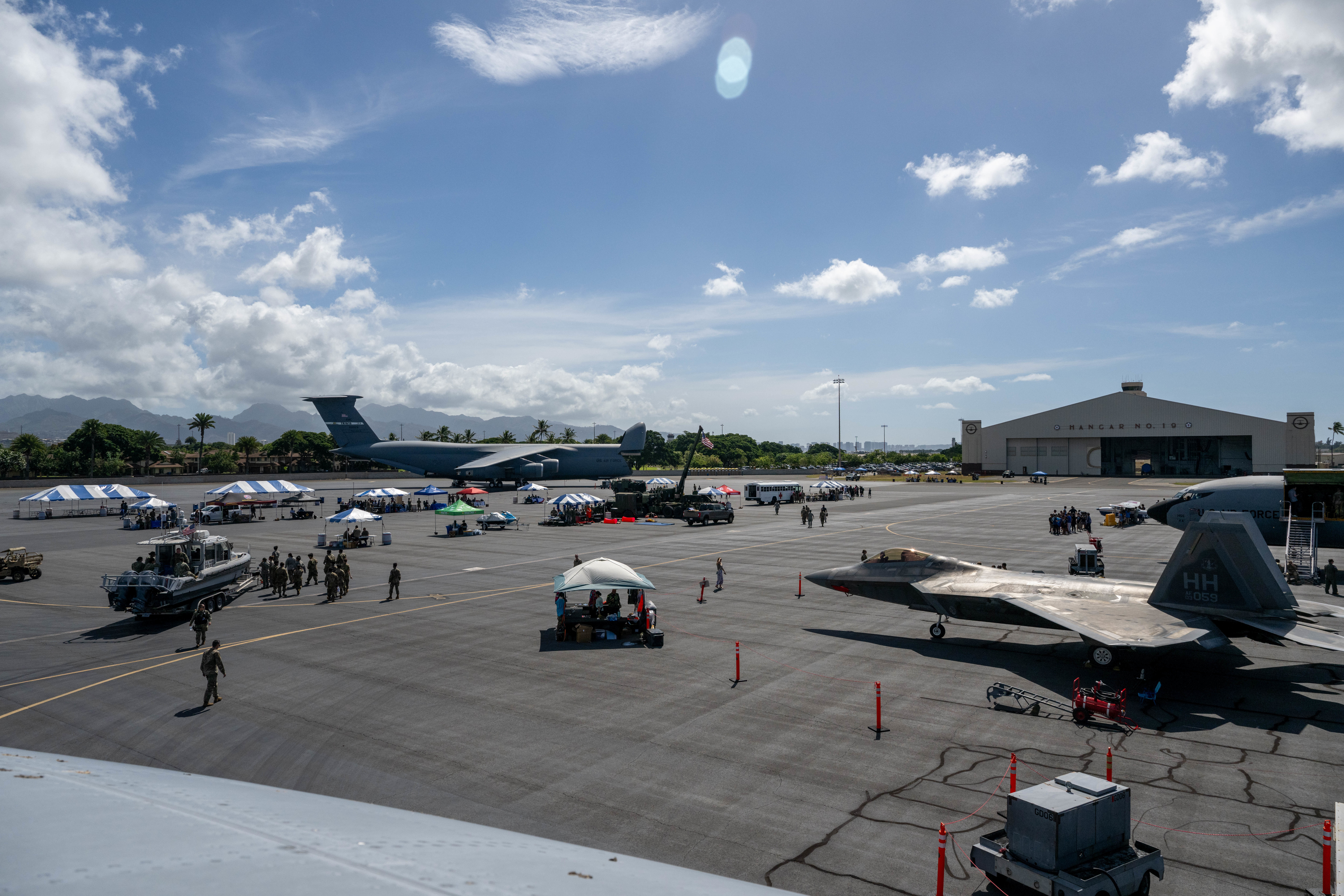 Students from across Oahu explore the flightline of Joint Base Pearl Harbor-Hickam, Hawaii, during the Wings of Aloha Student Expo, September 12, 2025. The aim of Wings of Aloha is to strengthen ties with local communities and provide insight into Team Hickam’s mission to project and sustain airpower throughout the Indo-Pacific. (U.S. Air Force photo by Airman 1st Class Aden Brown)