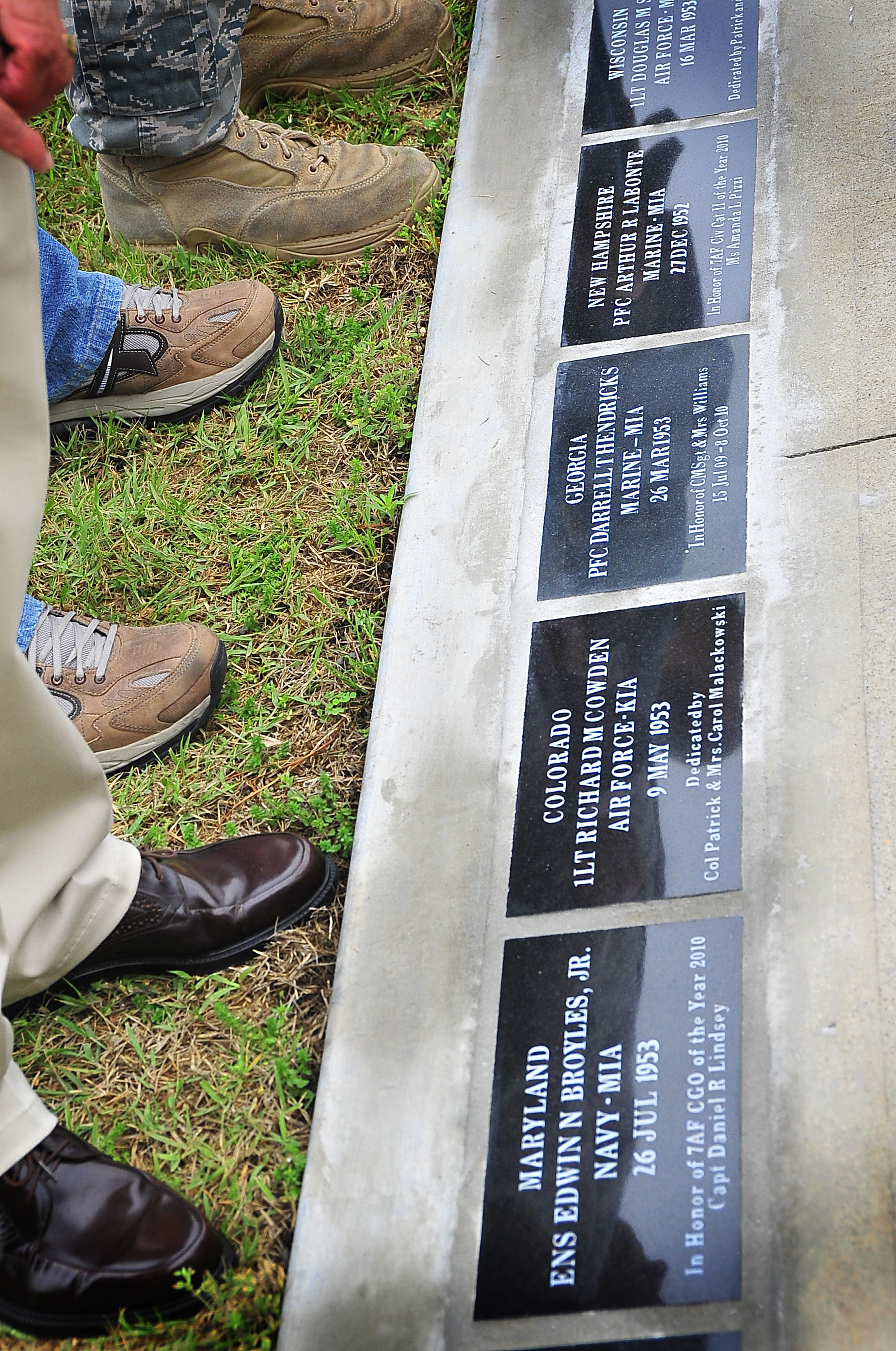 The Air Force Sergeant's Association, Chapter 1556 at Osan Air Base, Republic of Korea hosted a POW/MIA Walkway Dedication Ceremony, here May 21. The walkway was spondered by Air Force Sergeant's Association, Chapter 1556, the National League of POW/MIA families recieved a three thousand dollar check for the construction of the memorial. (U.S. Air Force Photo by/Staff Sgt. Daylena Gonzalez)