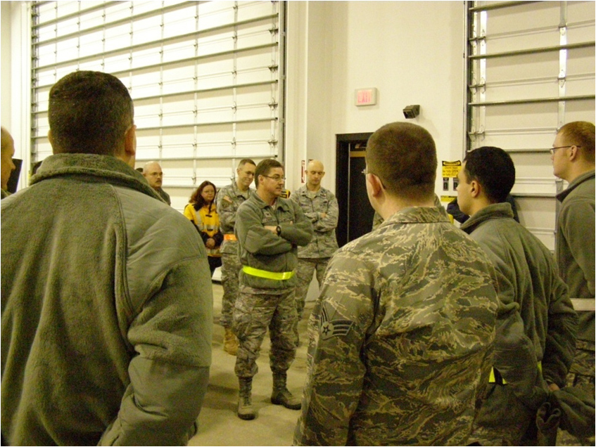 F-22 Aircraft Recovery Operation Ground Support, 18 November 2010, JOINT BASE ELMENDORF-RICHARDSON, Alaska. Col Evans, briefing the team on the Importance of their mission. (U.S. Air Force courtesy photo)