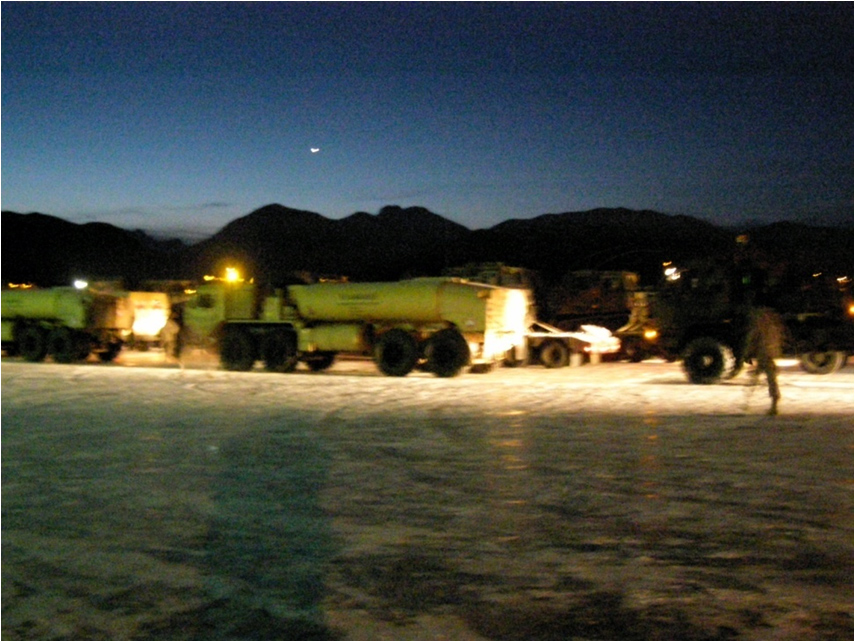 F-22 Aircraft Recovery Operation Ground Support, 18 November 2010, JOINT BASE ELMENDORF-RICHARDSON, Alaska. Aircraft recovery operation convoy pre-checks. (U.S. Air Force courtesy photo)
