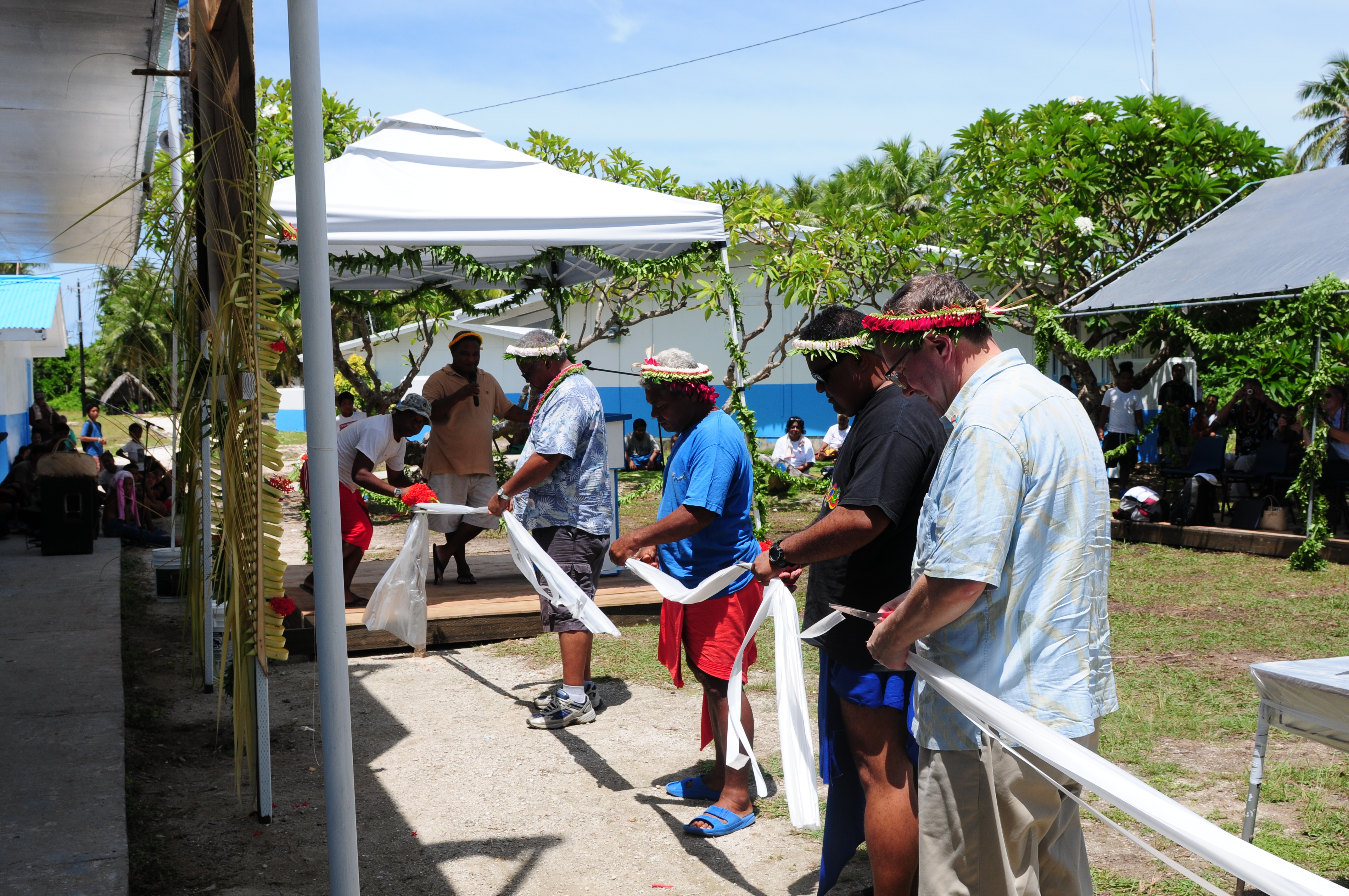 U.S. Ambassador Peter A. Praha (right), Yap and community leaders cut a ribbon at a dedication ceremony as part of Pacific Unity 2010 at the Outer Islands High School, Falalop, Yap, Federate States of Micronesia, on Sep. 22, 2010 . Pacific Unity 2010 is a humanitarian civil engineering effort in which engineers completely rebuilt, remodeled and repainted a high school on a remote island in Micronesia. (U.S. Air Force Photo/Master Sgt. Victoria Meyer)