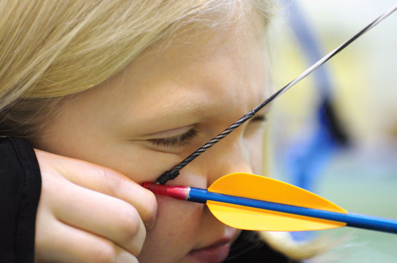 FORT RICHARDSON, Alaska -- Victoria Miller, 10, daughter of Army 1st Sgt. Shad Miller Jr., 3rd Battalion, 509th Parachute Infantry Regiment, draws a bead on a bullseye Jan. 7 at Fort Richardson’s Youth Services facility.(U.S. Army photo/ David Bedard/ Fort Richardson Public Affairs)