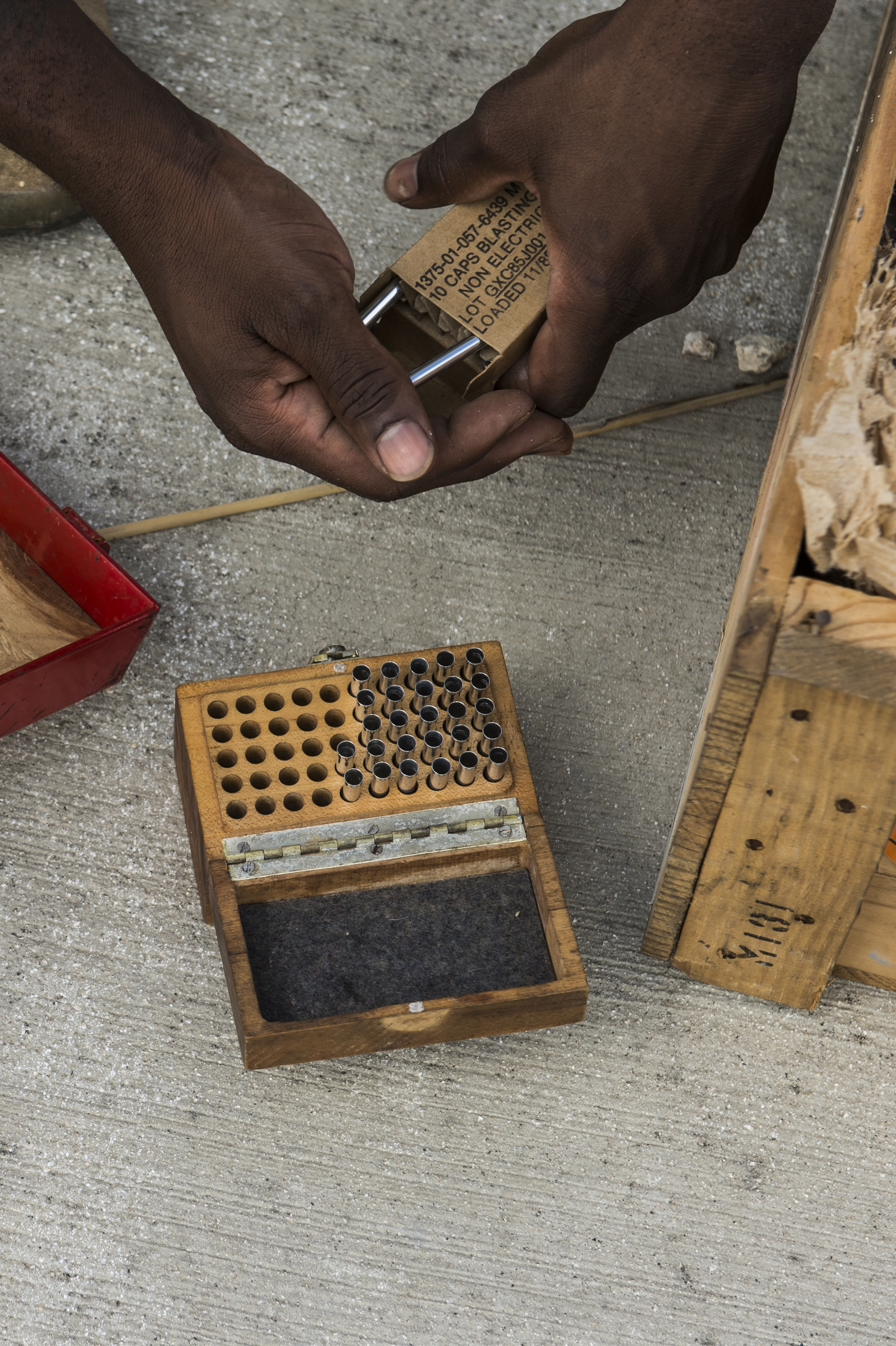 U.S. Air Force Tech. Sgt. Jason Williams, 554th Rapid Engineer Deployable Heavy Operational Repair Squadron Engineer Squadron pavements and heavy equipment operator, learn how to use explosives at Andersen Air Force Base on Sept. 4, 2014. The RED HORSE squadron provides the Air Force with a highly mobile civil engineering response to support contingency and special operations worldwide. Units are self-sufficient and capable of rapid response and independent operations in remote, high-threat environments worldwide. (U.S. Air Force photo by Staff Sgt. Stephany Richards/Released)