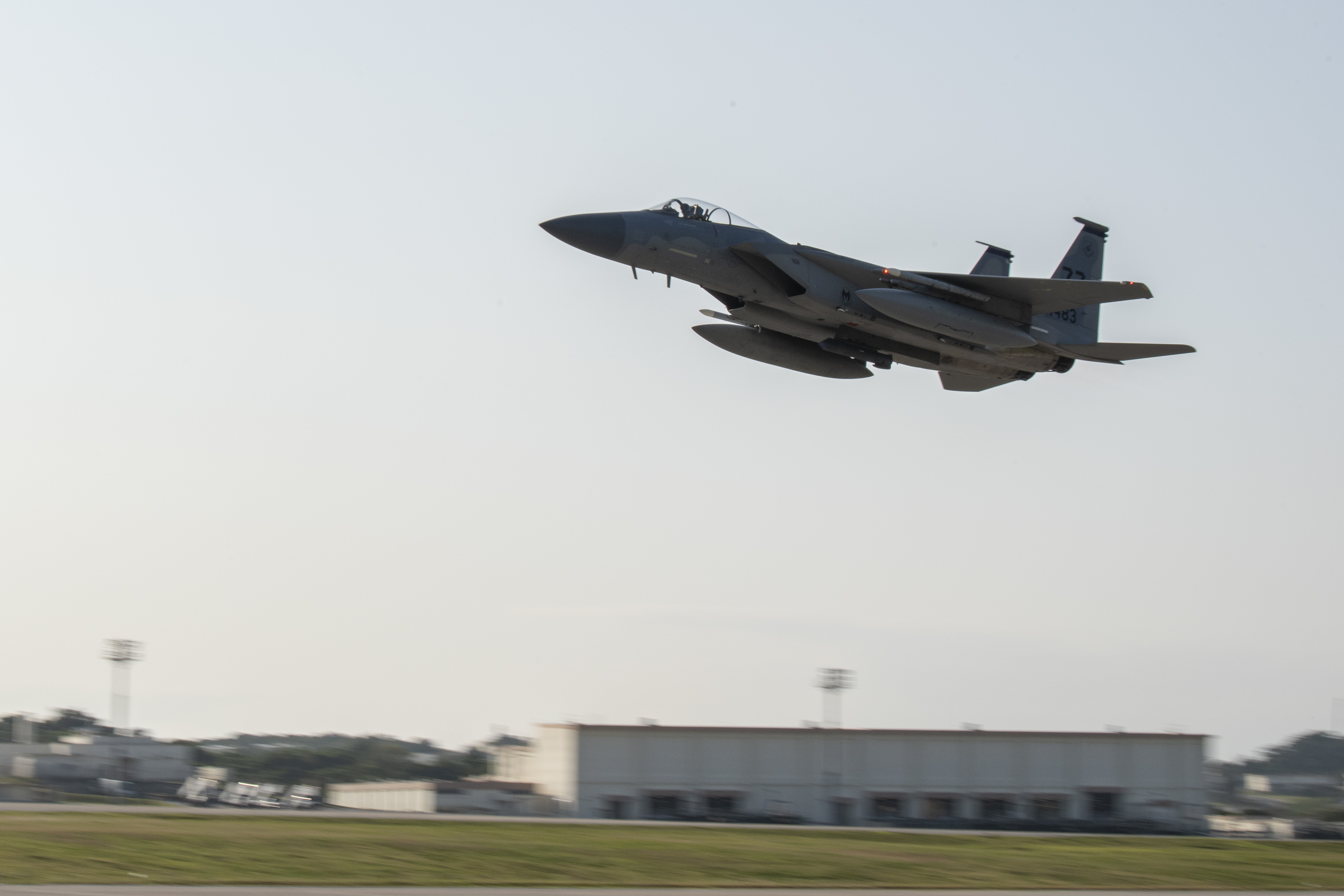 A U.S. Air Force F-15C Eagle from the 44th Fighter Squadron takes off during Exercise WestPac Rumrunner Jan. 10, 2020, at Kadena Air Base, Japan. Westpac Rumrunner represents an evolution of 18th Wing assets and capability to work with joint partners in defense of American allies and to ensure a free and open Indo-Pacific. (U.S. Air Force photo by Airman 1st Class Mandy Foster)