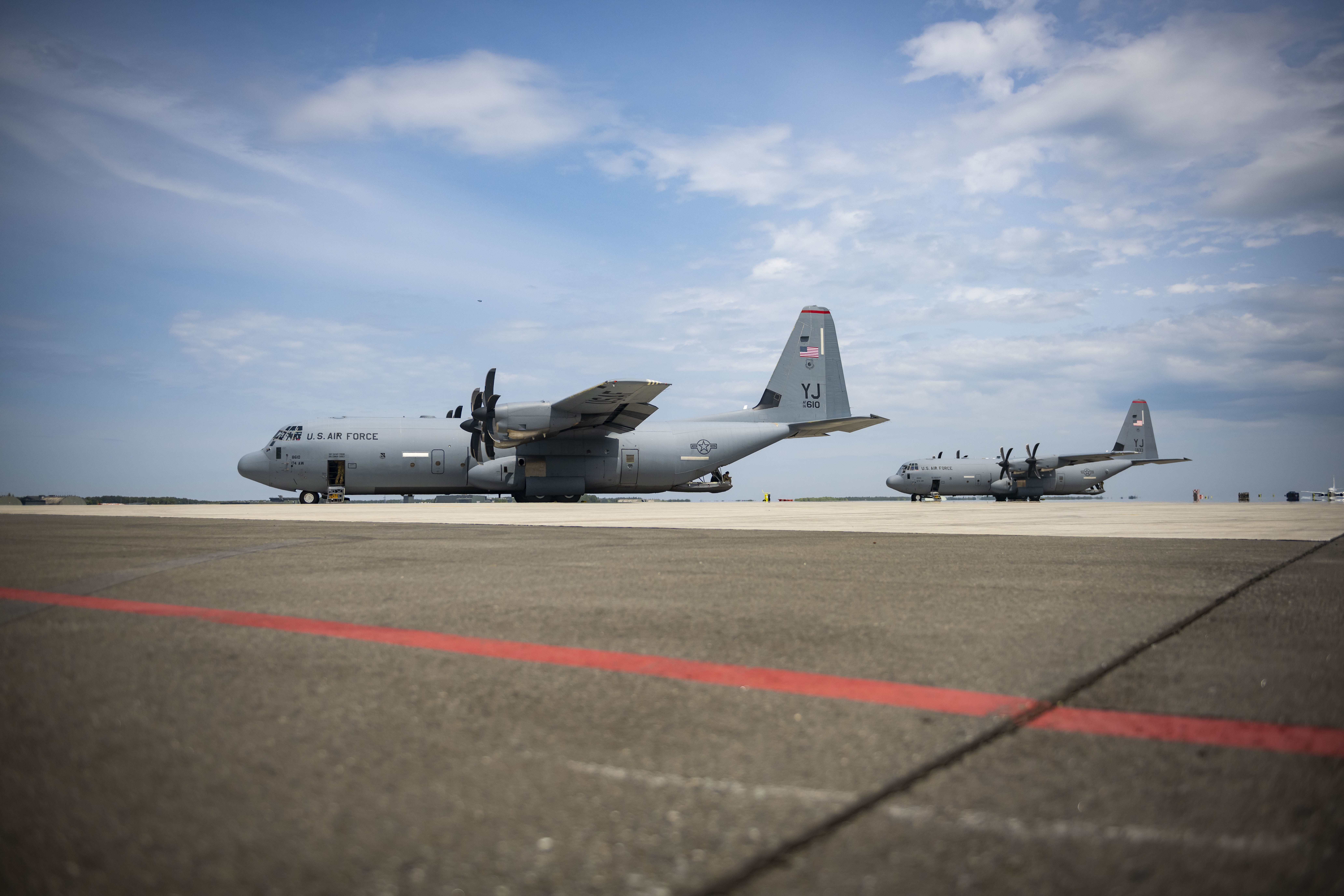 U.S. Air Force C-130J Super Hercules assigned to the 36th Airlift Squadron sit on the flightline during Exercise Beverly Sunrise 22-04 at Misawa Air Base, Japan, May 12, 2022. Agile Combat Employment is the result of the 2018 National Defense Strategy instructing services to alter their posture and transition from a large, centralized, unhardened infrastructure to smaller, dispersed, resilient, adaptive basing. (U.S. Air Force photo by Airman 1st Class Leon Redfern)